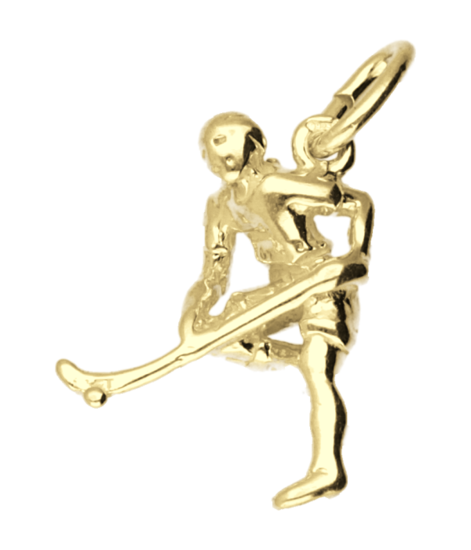 Deze fraai afgewerkte Gouden Hockeyspeler ketting hanger wordt geleverd in een gratis cadeau verpakking.