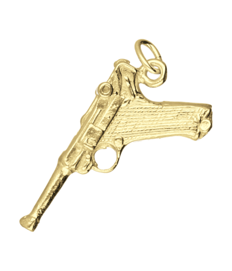 Gouden Luger pistool kettinghanger is voorzien van de wettelijke keurmerken.