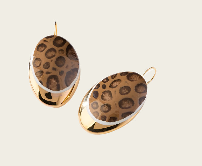 Kaaiman Collectie goud ovaal porseleinen oorhangers