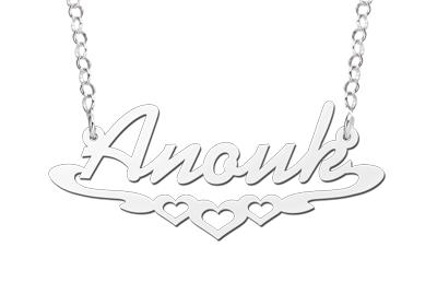 Deze fraai afgewerkte Naamketting Anouk met hartjes is een naamketting waarvan u de naam opgeeft en daarna speciaal voor u gemaakt wordt. U kunt tot maximaal 12 letters opgeven in het sierlijke lettertype "Anouk" als op de foto.