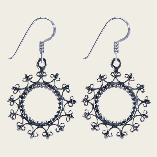 De prijs van de zilveren Opengewerkt rond met gat oorhangers is per set van 2 en inclusief BTW.
