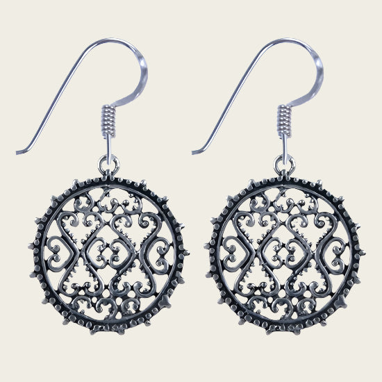 Deze fraai afgewerkte zilveren Opengewerkt rond oorhangers wordt geleverd in een gratis cadeau verpakking.