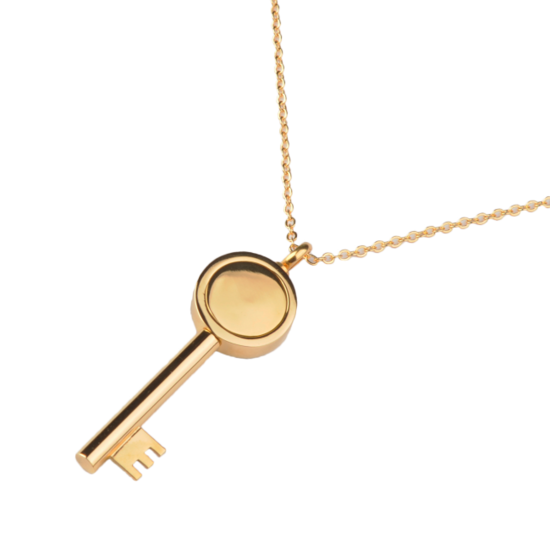 De prijs van de RVS assieraad gouden Sleutel design Herdenkingshanger is exclusief de afgebeelde ketting.