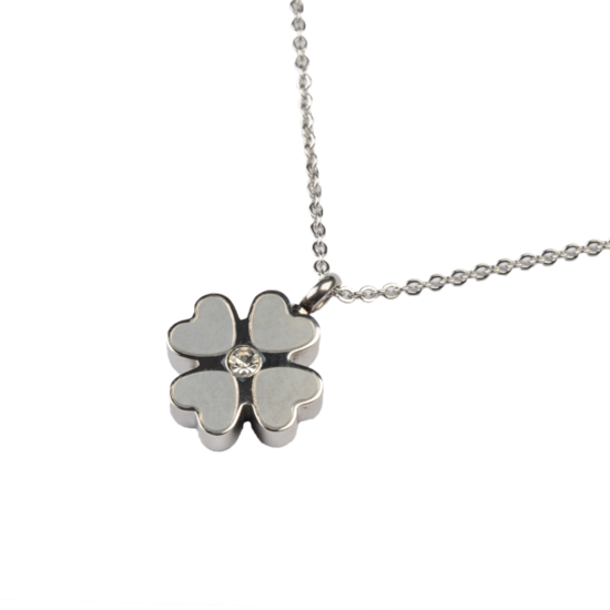 De prijs van de RVS assieraad Klaver 4 zilver design Herdenkingshanger is exclusief de afgebeelde ketting.