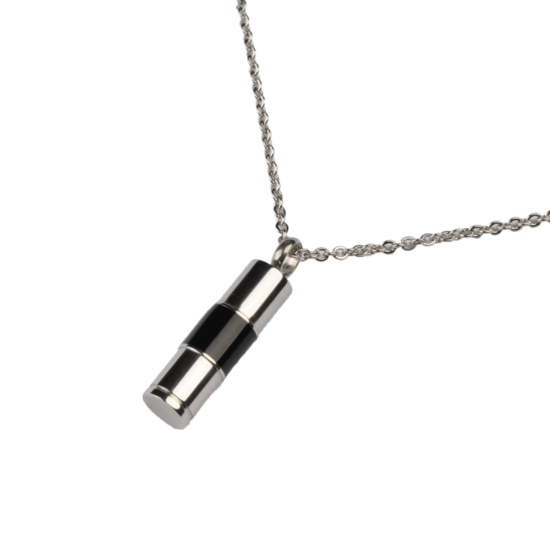 De prijs van de RVS assieraad zwarte Koker design Herdenkingshanger is exclusief de afgebeelde ketting.