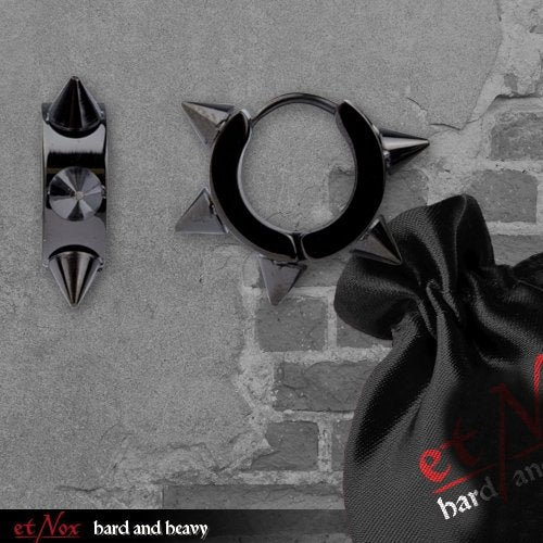 De prijs van deze RVS Spikes gezwart oorhangers - klapcreolen is per set van 2 en inclusief BTW.