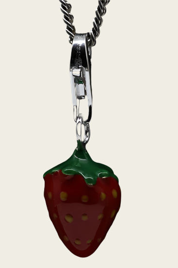 De prijs van de zilveren Aardbei hanger én bedel is exclusief de afgebeelde ketting.