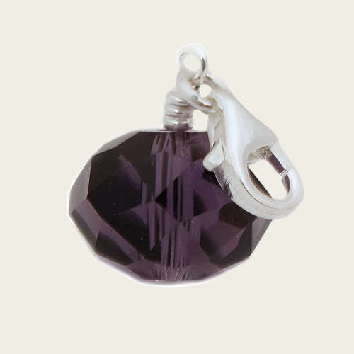 Zilveren Bal paars kristalgeslepen hanger en/of bedel