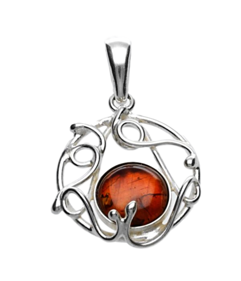 Bestel nu deze fraaie Zilveren Barnsteen fantasie rond kettinghanger