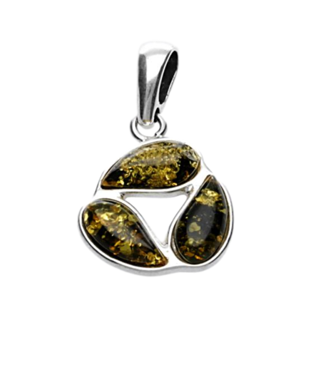 Zilveren Barnsteen fantasie trio rond groen kettinghanger