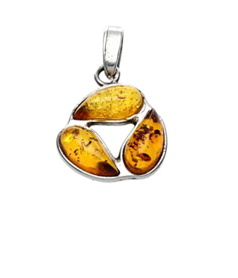 Deze fraai afgewerkte Zilveren Barnsteen fantasie trio rond kettinghanger wordt geleverd in een gratis cadeau verpakking.