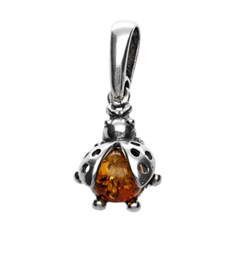 Zilveren Barnsteen lieveheersbeestje kettinghanger