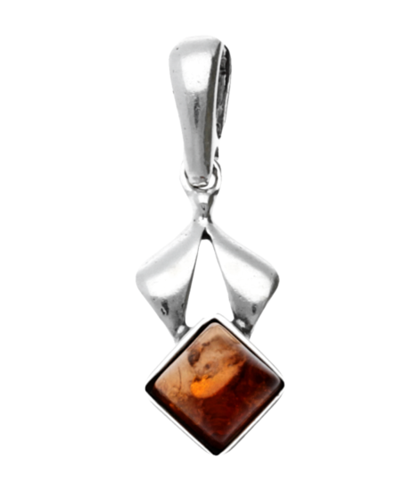Zilveren Barnsteen ruit met driehoekjes kettinghanger