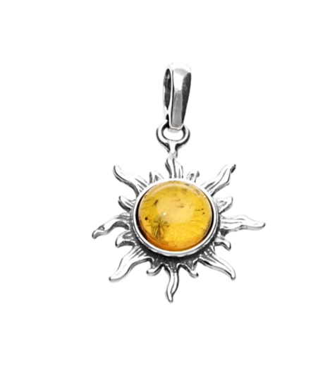 Zilveren Barnsteen zon kettinghanger