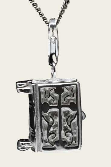 De prijs van de zilveren Bijbel te openen hanger én bedel is exclusief de afgebeelde ketting.
