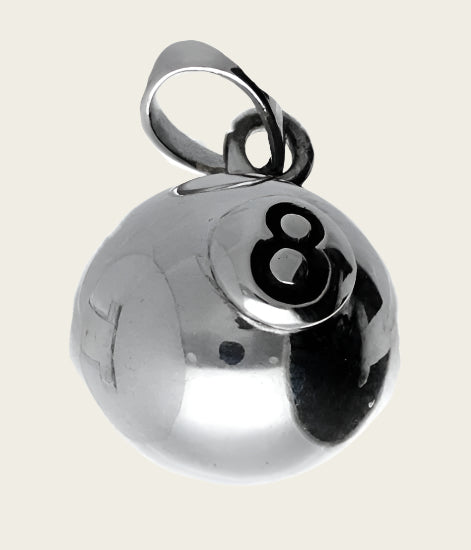 Bestel nu deze fraaie zilveren Biljartbal snooker 8 kettinghanger
