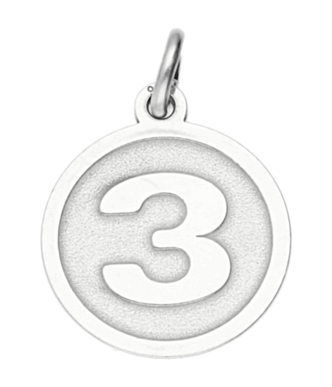 Bestel nu deze fraaie Zilveren cijfer 3 rond mat-glans kettinghanger