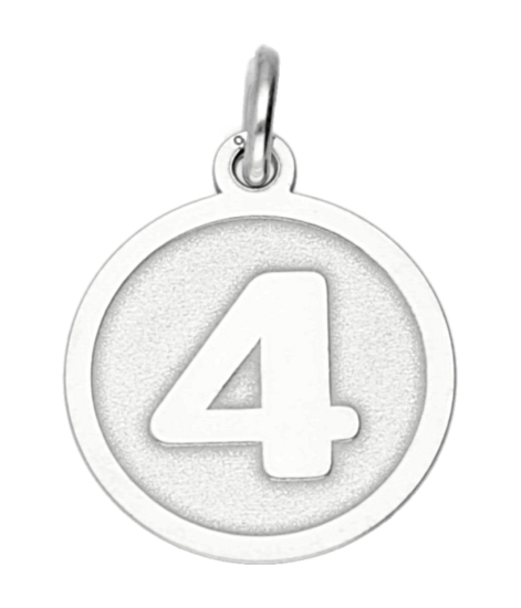 Bestel nu deze fraaie Zilveren cijfer 4 rond mat-glans kettinghanger