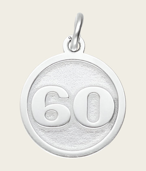 Zilveren cijfer 60 rond mat-glans kettinghanger