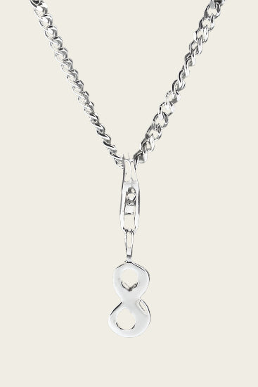De prijs van de zilveren Cijfer 8 acht hanger én bedel is exclusief de afgebeelde ketting.