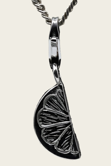 De prijs van de zilveren Citroenschijf hanger én bedel is exclusief de afgebeelde ketting.