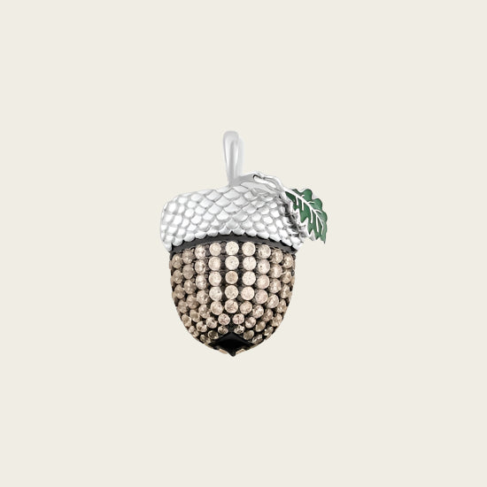 Eikelnoot hanger van 925 sterling zilver, gerodineerd met bruine zirkonia stenen en een groen geëmailleerd blad is een betoverende hanger.Deze fraai afgewerkte Zilveren Eikel hanger met los blaadje en zirkonia's wordt geleverd in een gratis cadeau verpakking, wordt standaard gratis verzonden en past door de brievenbus. U hoeft er niet voor thuis te blijven.