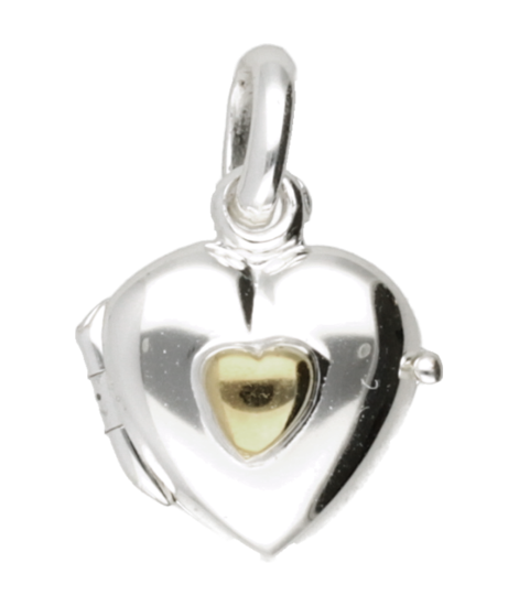 Zilveren Foto medaillon hart met gouden hart hanger - klein