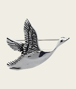 Zilveren Gans in vogelvlucht broche kledingspeld