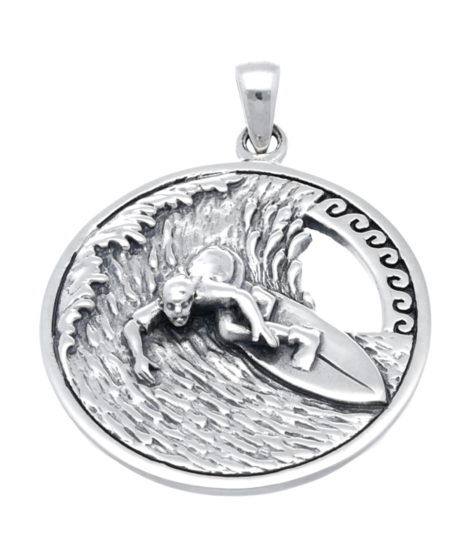 Bestel nu deze fraaie zilveren Golfsurfer rond kettinghanger