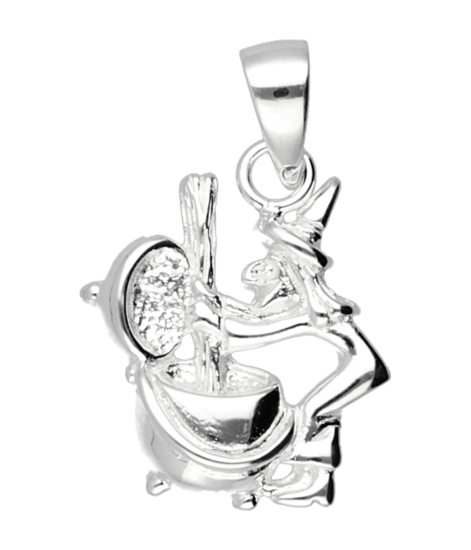 Bestel nu deze fraaie Zilveren Heks roerend in pot kettinghanger