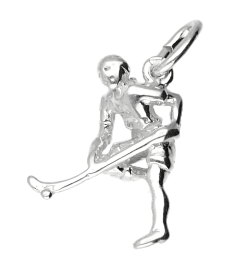 De Zilveren Hockey speler ketting hanger is zonder ketting. Bijpassende kettingen vindt u onder de rubriek: Zilveren kettingen voor hangers.