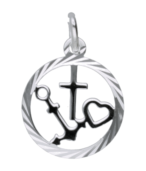 Zilveren Hoop, geloof en liefde in ring 10 mm. ketting hanger