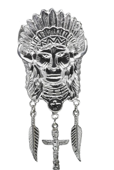 Zilveren Indiaan met veren en totem ketting hanger - XL