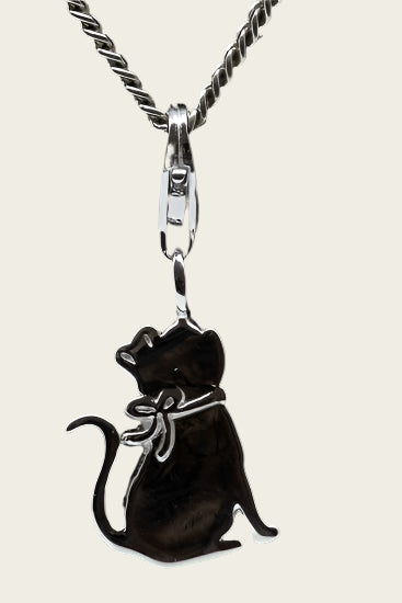 De prijs van de zilveren Kat zittend vlak hanger én bedel is exclusief de afgebeelde ketting.