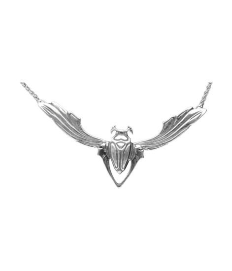 Zilveren Kever vliegend Art Nouveau Jugendstil hanger + ketting 45 cm