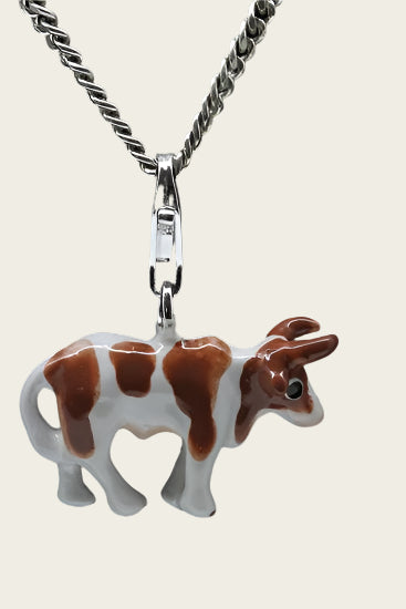De prijs van de zilveren Koe met bruine vlekken hanger én bedel is exclusief de afgebeelde ketting.