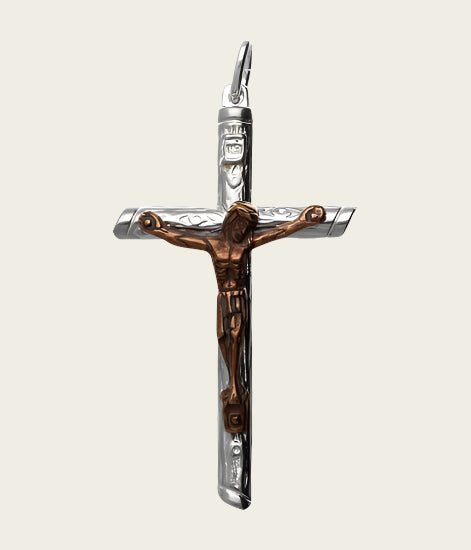 Zilveren Kruis zilver corpus brons XL kettinghanger