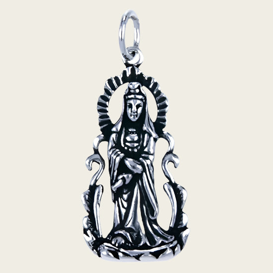 Zilveren Kwan Yin staand ketting hanger