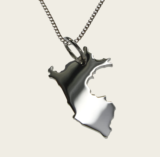 Deze fraai afgewerkte Landkaart Peru ketting hanger van 925 sterling zilver is handmatig aan de voorzijde hoogglans gepolijst en aan de achterzijde gematteerd en wordt geleverd in een gratis cadeau verpakking.