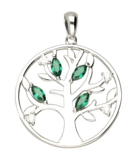 Zilveren Levensboom met zirkonia kettinghanger