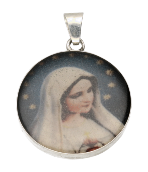 Bestel nu deze fraaie Zilveren Maria afbeelding in kleur rond XL kettinghanger