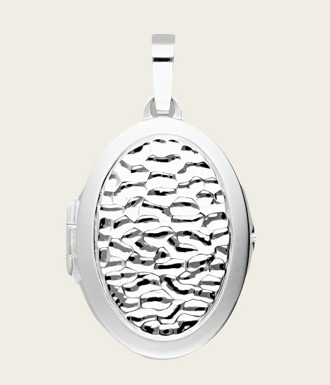 Zilveren Medaillon 28 mm ovaal golven 2 foto's kettinghanger
