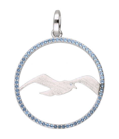 Bestel nu deze fraaie Zilveren Meeuw mat in ring met blauwe kristallen groot kettinghanger
