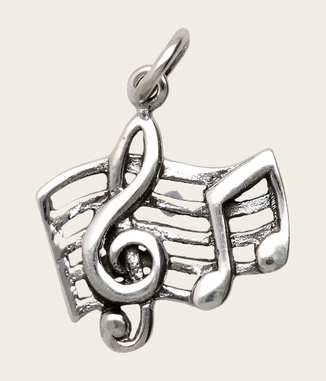 Bestel nu deze fraaie Zilveren Muziekbalk met sleutel en noten kettinghanger