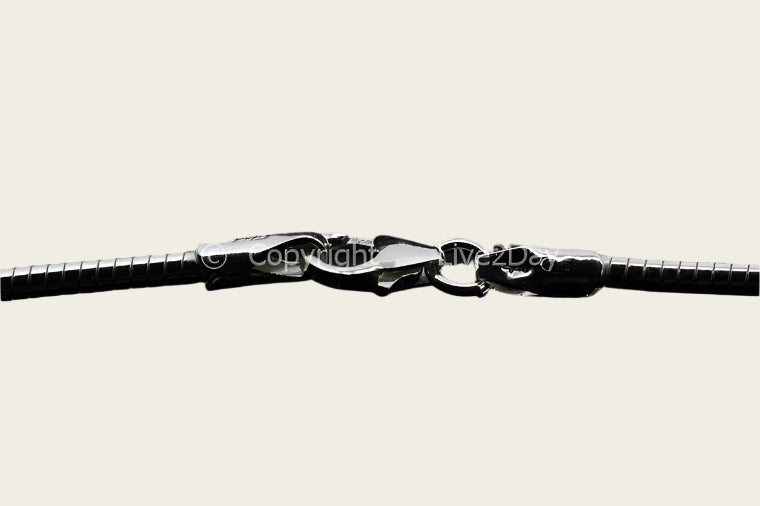 Deze ketting betreft een zg. Spang ketting wat wil zeggen dat de Omega ketting niet uit schakels bestaat maar uit één stuk. Hierdoor valt deze ketting altijd fraai rond om de nek, zelfs wanneer er een hanger aan gedragen wordt.