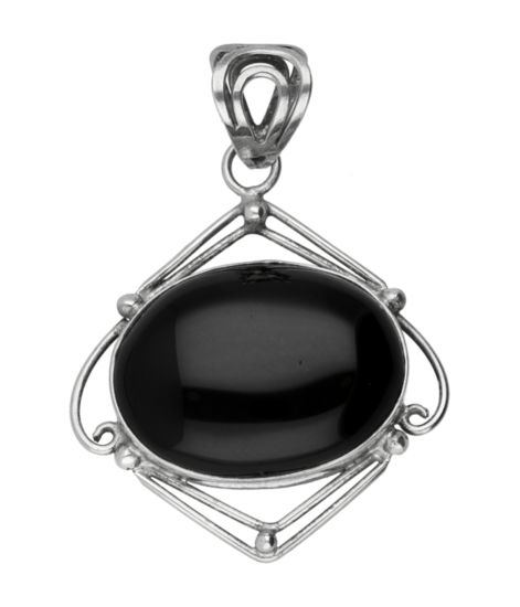 Bestel nu deze fraaie Zilveren Onyx ovaal met fantasie vatting kettinghanger