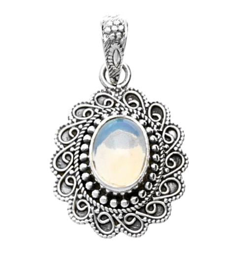 Bestel nu deze fraaie Zilveren Opaal ovaal bewerkt 3 kettinghanger
