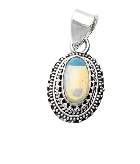 Bestel nu deze fraaie Zilveren Opaal ovaal bewerkt 4 kettinghanger