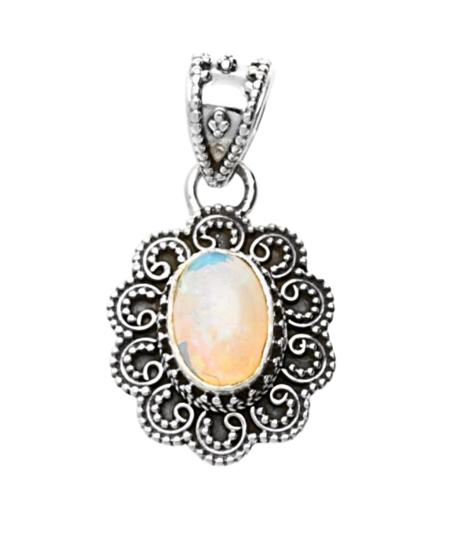 Bestel nu deze fraaie Zilveren Opaal ovaal bewerkt 5 kettinghanger