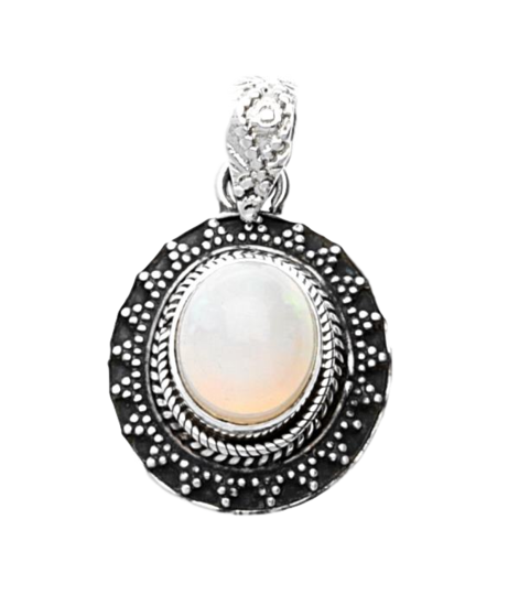 Bestel nu deze fraaie Zilveren Opaal ovaal bewerkt 7 kettinghanger